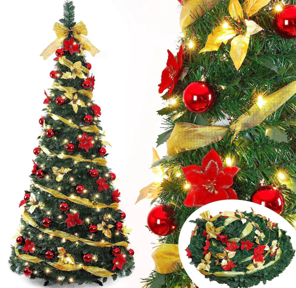 Árbol de Navidad Plegable 1.8 Metros con Decoración y Luces LED