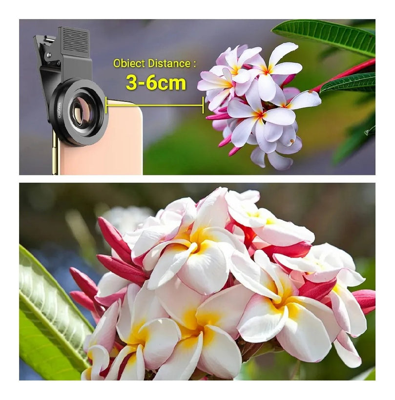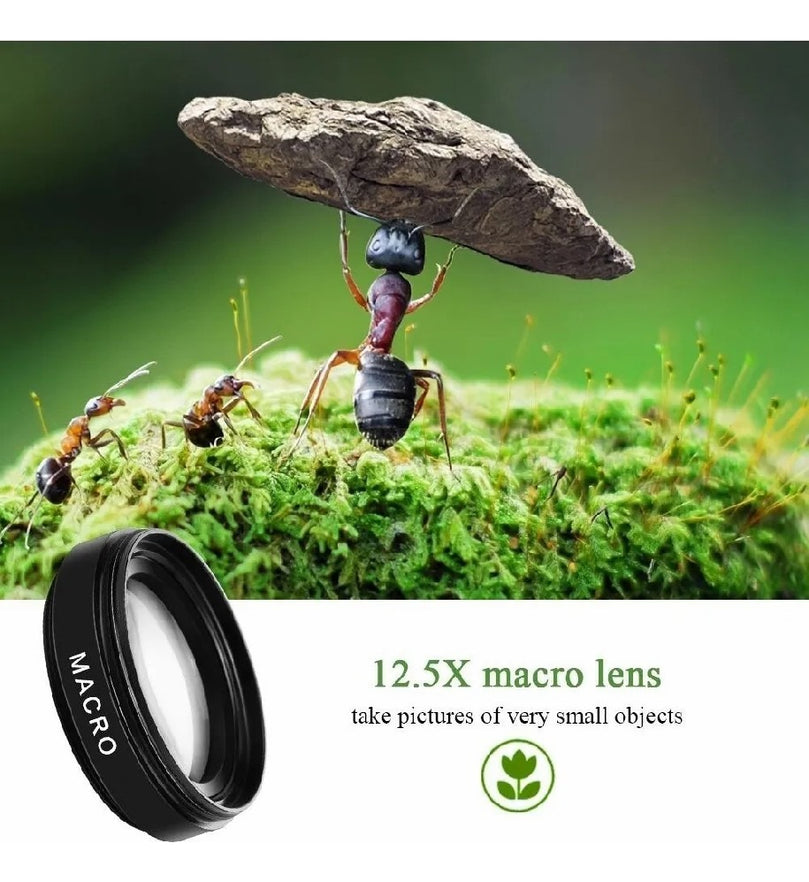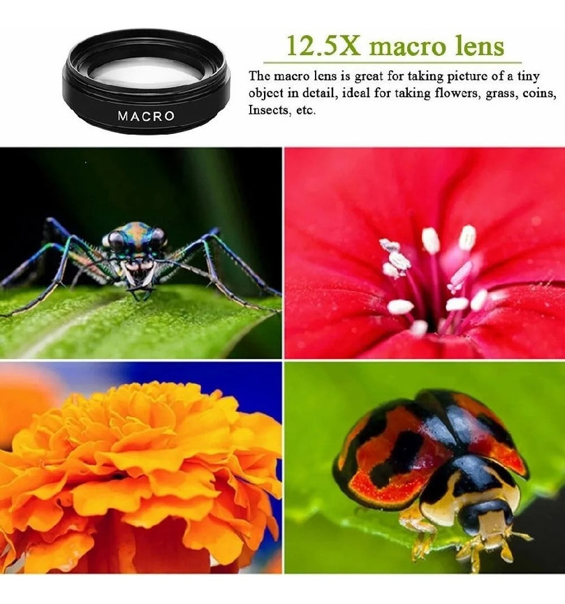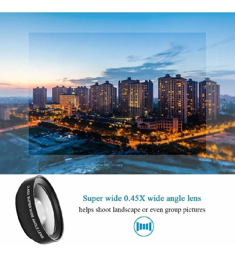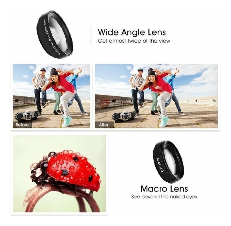 El ángulo de visión de la cámara se puede ampliar en un 60% sin afectar la calidad de disparo del teléfono móvil cuando el objetivo está conectado al teléfono móvil a través de un clip adaptador de teléfono móvil multifuncional.