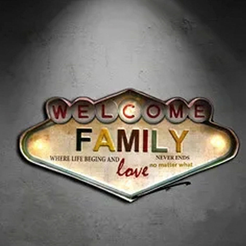 Letrero Retro Con Luz LED Welcome Family FactoryHomeLetrero Retro Con Luz LED Welcome Family FactoryHome