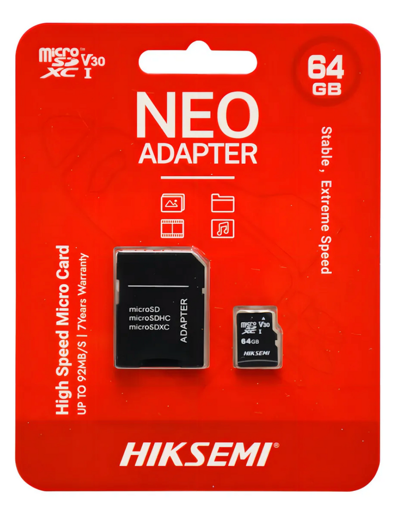 La Memoria Micro SD Hiksemi Neo de 64GB con adaptador SD es una solución práctica y confiable para ampliar el almacenamiento de smartphones, tablets, cámaras, notebooks, consolas y otros dispositivos compatibles.