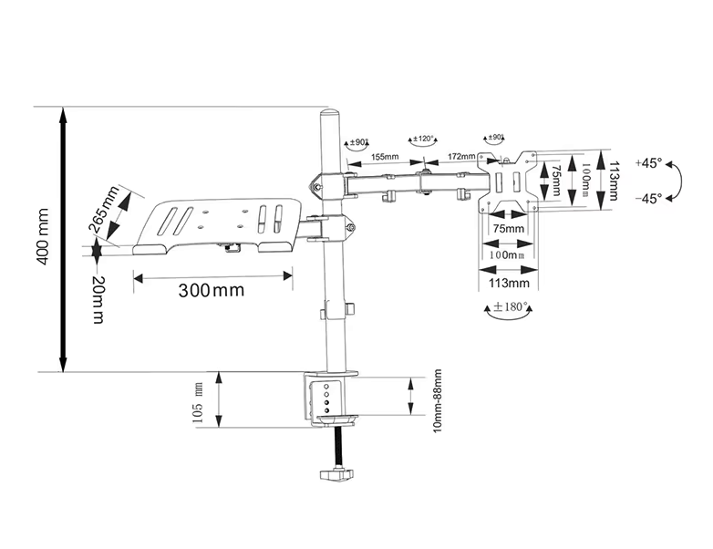 Instalación en 10 Minutos o Menos - El brazo de resorte de gas de una sola pieza simplifica el montaje. Solo necesitas elegir la base de montaje adecuada y montar los monitores. La configuración se puede completar en 10 minutos o menos.